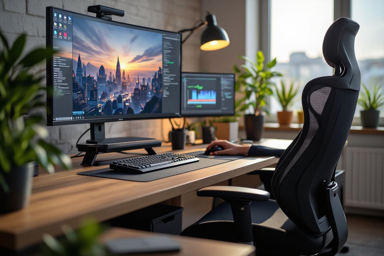 - Desk height allowing ~90° elbow bend while typing